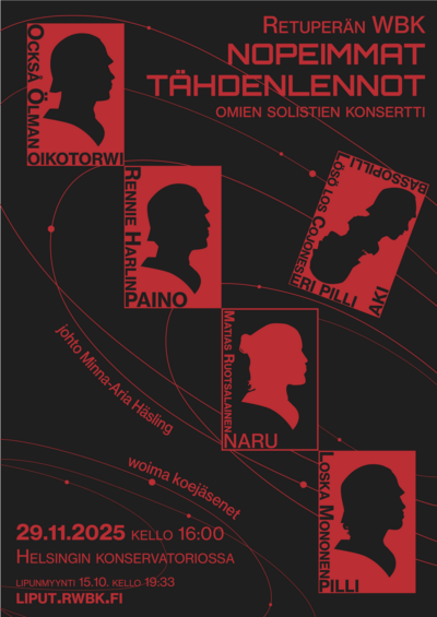 Tänä marraskuuna pääsette todistamaan Retuperän WBK:n holistisia saavutuksia, kun orkesterin omat musikaalisen tähtitaivaan kirkkaimmat mustat aukot... (lisää)