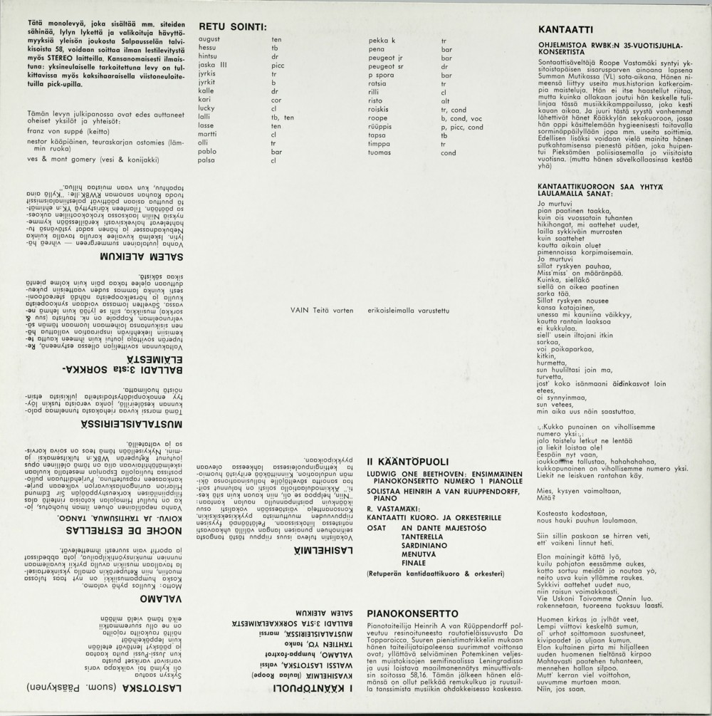 Vuonna 1968 pidetyssä 35-vuotisjuhlakonsertissa nauhoitettiin joukko legendaarisia esityksiä. Tuntui luonnolliselta, että näitä kappaleita tulisi saada myös levylle. Näin syntyi RWBK:n kolmas levy vuonna 1972. Levyllä on mm. Heinrich A. van Rüüppendorfin solistama, Aukustin sovittama ja Ludvig van Beethovenin säveltämä pianokonsertto no 1 sekä Roopen loistoteos Juhlakantaatti kuorolle ja orkesterille. Rahtikeikkaohjelmistosta mainittavimpia ovat punainen- ja musta 16 eli Shalem Aleikum ja Noche de estrellas. Tässä järjestyksessä.