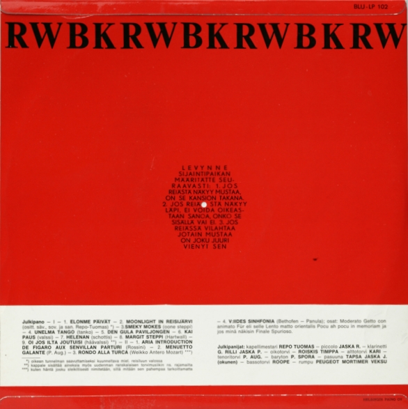 Levylle pääsivät klassisen musiikin helmet Beethovenin 5. sinfonia (tilaustyö Jorma Panulalta), sekä Mozartin turkkilainen marssi. Loppu materiaali koostuukin sitten rahtikeikkaohjelmiston helmistä kuten numero 53, Den gula paviljongen (Laukaus paviljongissa). Levy on äänitetty Kirjaliiton talon studiolla, joka siihen aikaan oli paras paikka äänitykseen. Levy on loppuunmyyty. Jopa siinä määrin, että orkesteri oli pitkään ilman omaa arkistokappaletta, mutta yleisöön vedottuaan sai sellaisia peräti kaksin kappalein.